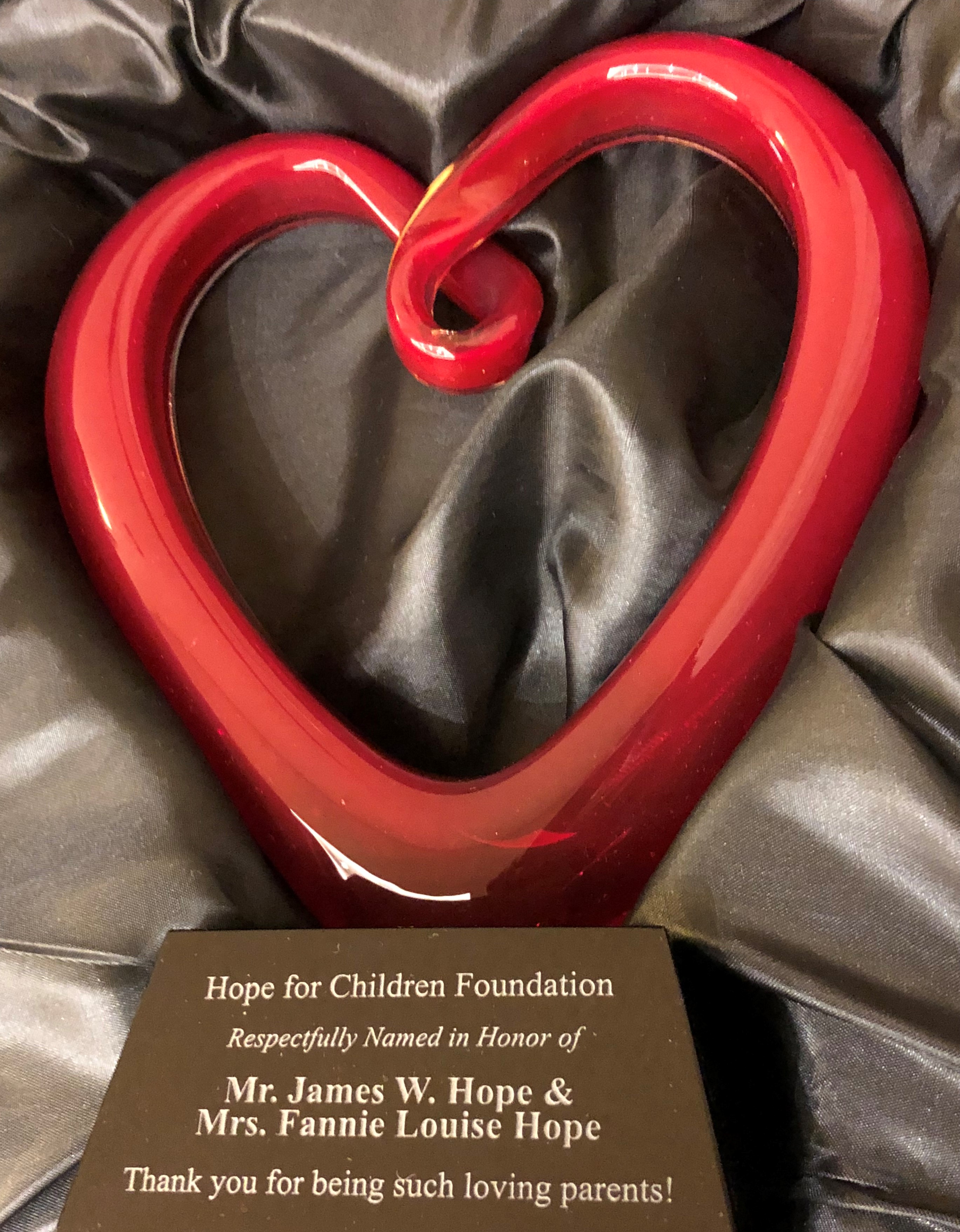 We wrapped up the end of the year by participating with the Dallas Police Department Toy Drive and toy delivery in December. On the 19th of December we hosted our 2018 Hope for Children Foundation Gala at the Hyatt Regency Dallas Hotel. We had so much fun with our family, extended family, friends, supporters and the Dallas Police Department Santa Cops. My parents, James W. Hope and Fannie Louise Hope were recognized for Hope for Children Foundation being named in their honor back in 1998. Mrs. Fannie Hope was present to receive their award. My father passed away in 1990. The award is really very beautiful.